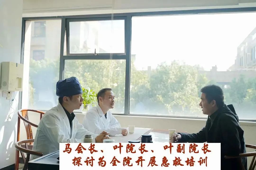 马方勇会长、叶宝定院长、叶论副院长还围坐一堂,共同商讨了如何进行急救培训的事项,要将急救知识传达到对杭州西湖口腔医院全体中去,传达到广泛的市民群体中去。
