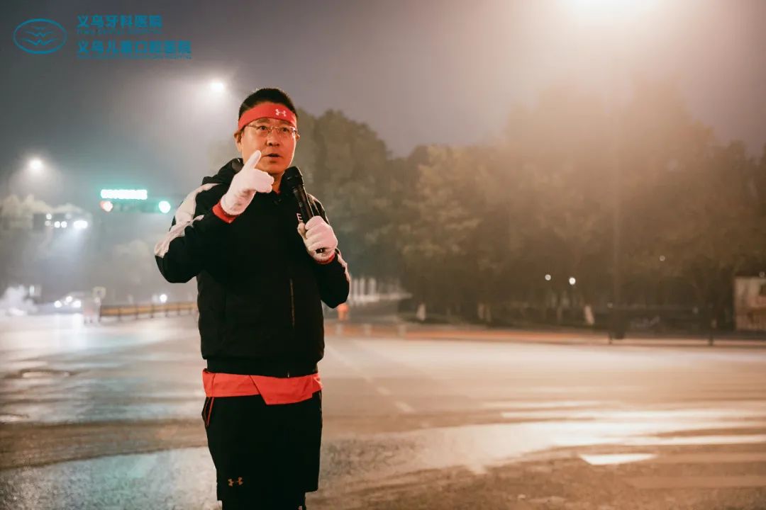 清晨十分,天色未明,杭牙集团董事长&总经理杨占友,率领义乌团队及其他院区的跑团同仁,于义乌牙科医院&义乌儿童口腔医院前集结,进行公益助跑启动仪式。