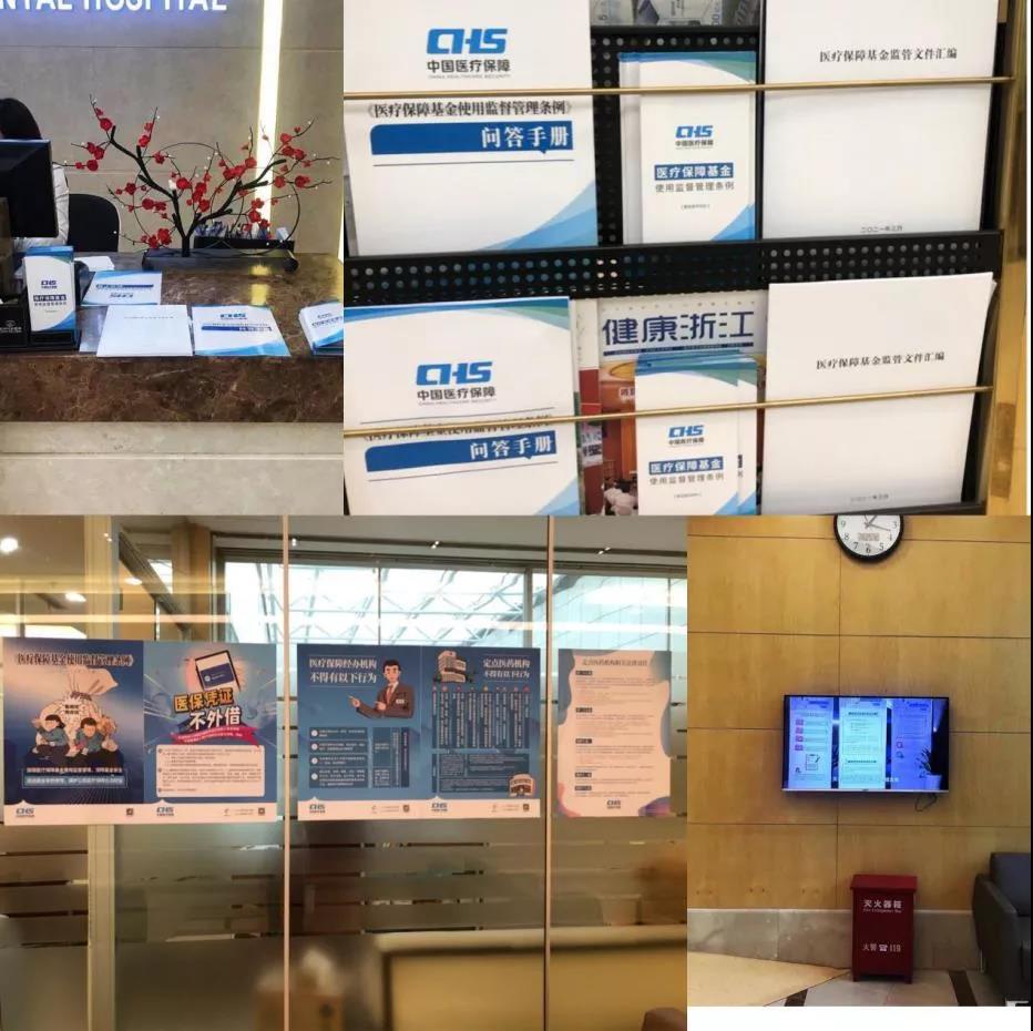 与此同时,杭牙集团在院区用心营造宣传氛围。根据医保局发放的模板,及时定做了各种宣传物料摆放于服务动线中,方便就诊人员取阅;并下发到每个科室,方便科室医务人员随时学习与宣传。