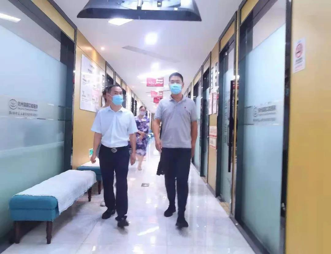 7月14日,杨占友董事长偕同杭牙集团杭州西湖口腔医院&杭州富阳口腔医院总院长&董事长特别助理叶宝定一行走访巡查杭州牙科医院。