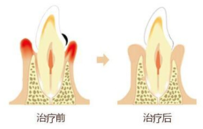 牙周炎应当及时治疗,以免牙周炎更加严重。牙周炎的治疗以局部治疗为主,首先是除去牙龈上方的牙石(医学上称为龈上牙石),然后除去牙周袋内的牙石(即龈下牙石),并刮除牙周袋内含有大量细菌毒素的病变牙骨质,经过这些治疗后,牙龈红肿可以消退,牙龈出血和牙周袋溢脓可消失。